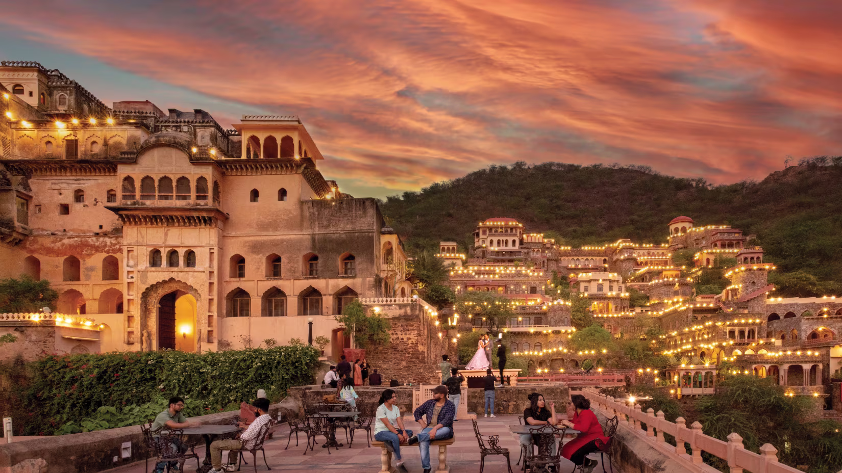A historic fort converted into a heritage hotel where people visits.